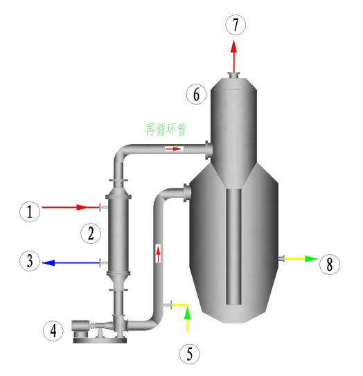 OSLO結(jié)晶器又分為蒸發(fā)式、冷卻式、真空式、鹽析式四種類型。其結(jié)構(gòu)如圖,物料過飽和度產(chǎn)生的方法如何,過飽和溶液都是通過晶漿的地步,然后穿過晶體床層并逐漸消除過飽和度。接近飽和的溶液由結(jié)晶段的上部溢流而出,再經(jīng)過循環(huán)泵進(jìn)行下一次循環(huán)。強(qiáng)烈循環(huán)產(chǎn)生在由溢流口經(jīng)循環(huán)泵通過過飽和發(fā)生器再至晶床的底部,回到溢流口。